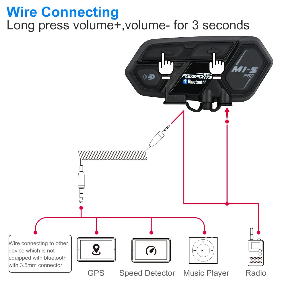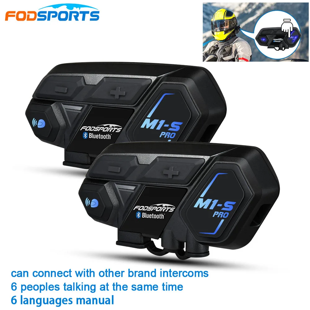 Bluetooth 4.1 M1-S Pro Motorcycle Bluetooth Helmet Headset Intercom Up To 8 Riders Group Talking Motorbike Waterproof Interphone : Click Here Fodsports Motorcycle Intercom 8 Riders M1-S Pro Helmet Headset Bluetooth Motorbike Bluetooth Interphone Connect BT-S2 V6 TCOM-SC : Click Here 2 pcs V6 Plus 6 Riders 1200m Bluetooth Intercom Headset Wireless Intercomunicador Interphone BT Full-Duplex Intercom FM OLED : Click Here