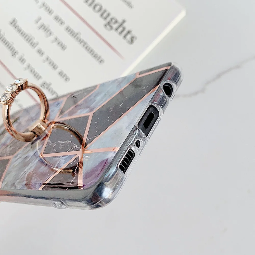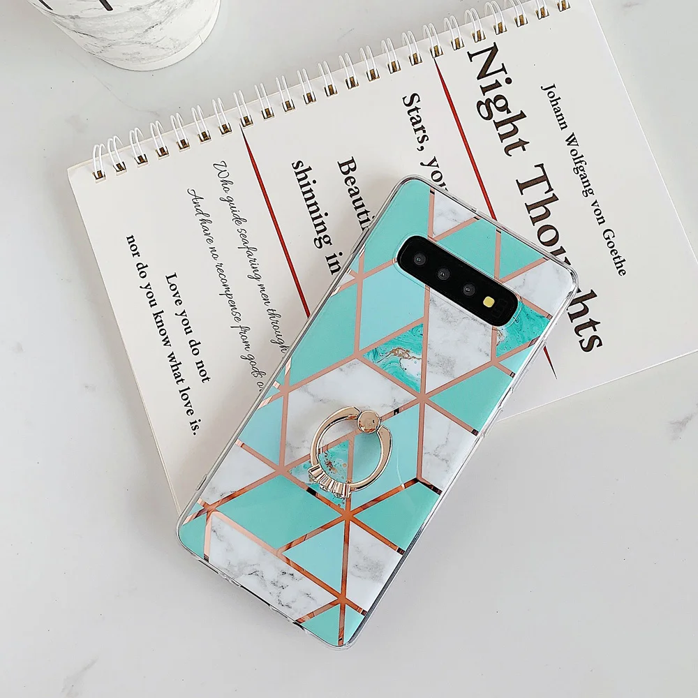 Affordable OTAO Electroplate Geometric Marble Ring Holder Case For Samsung S10 Plus S8 S9 A70 A50 Note 9 8 10